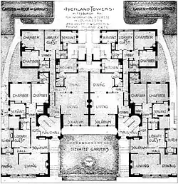 The Highland Towers Apartments is an historic building which is located in the Shadyside neighborhood of Pittsburgh, Pennsylvania. Built in 1913, it was listed on the National Register of Historic Places in 1976.[1]