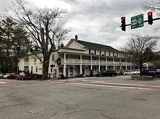 The Highlands Inn is a historic hotel at the corner of 4th and Main Streets in Highlands, North Carolina. The main block of the hotel is a three-story late Victorian structure built in 1880, with a two-story porch across the main facade. Over the course of the 20th century a number of alterations and additions have been made to this structure, to increase services and rooms. It is one of the oldest continuously operating hotels in the highlands of western North Carolina.[2]