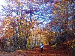 Similarly, the Nikaj-Mërtur Regional Nature Park falls within the Dinaric Mountains mixed forests terrestrial ecoregion of the Palearctic temperate broadleaf and mixed forest biome.[14] The vegetation of the park includes many communities of a Mediterranean and Eurasian type. It is covered by a mixture of oak, beech and pine trees growing on limestone and dolomite, which is characteristically to the Alps. The most widespread floral communities of oak are dominated by italian oak, austrian oak, sessile oak and macedonian oak. The beech and pine trees are represented by species such as european beech, bosnian pine and austrian pine.[15]