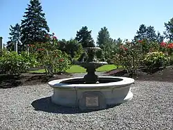 The Celebration Rose Garden was designed by Greg Butler, Lori White, Debbie Caton, and Nikki Fields. The rose garden features a large open lawn flanked by dual colonnades of columns donated by Secret Garden Statuary. An axially aligned fountain (also donated by Secret Garden) anchors the central space, surrounded by 8 rustic steel arches funded by the City of SeaTac and built by Klein Art/Fab. The garden is home to over 100 roses and hosts over a dozen weddings annually. All roses are organically maintained.