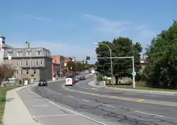 Initially unnumbered, the route was designated as Highway 15 during the summer of 1925.[6] By that point, the southern terminus was at the present junction of James Street (then Highway 2) and Main Street in Barriefield, north of Fort Henry.[7] The northern segment of Highway 15 – approaching and within Ottawa – changed throughout the years, and varies between maps; most indicate that the intersection of Bank Street and Wellington Street served as the northern terminus of Highways 15, 16, and 31.[note 1] Confederation Square, then known as Connaught Place, was originally planned to serve as the terminus of Ottawa-bound highways when route numbers were posted there in September 1925.[8]