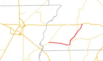 Arkansas Highway 168 (AR 168 and Hwy. 168) is an east–west state highway in Greene County, Arkansas. The route of 8.59 miles (13.82 km) runs from Highway 228 east through Crowley's Ridge State Park to US Route 412 (US 412).[2] A segment of the route composes the Crowley's Ridge Parkway.[3]
