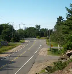 In 1952, the southern 17.8 kilometres (11.1 mi) of the route, along the east side of Lake Couchiching via what is now Simcoe County Road 44, was transferred to local municipalities and a new, longer route was designated to the east, merging with Highway 12 north of Brechin.[8][9] This routing remained in place until May 15 1976, when the province redirected the southern portion of Highway 69 along the route of Highway 103, between Waubaushene and Foot's Bay, in order to create a more direct route between Toronto and Sudbury. The route of Highway 69 between Foot's Bay and Brechin was consequently renumbered as Highway 169.[2]