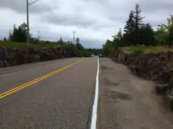 The Highway 17B route through Thessalon travelled along Lakeside Drive, Frances Street, Huron Street and River Street, dipping south of the present Highway 17 route through the town. Highway 17B connected to Highway 129 at its eastern connection to Highway 17.[24][25] The Thessalon Bypass was opened in 1958.[26]