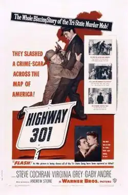 Highway 301 is an American 1950 film noir written and directed by Andrew L. Stone, and starring Steve Cochran, Virginia Grey, Gaby André and Edmon Ryan.[2]
