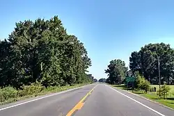 Now running as a major collector of rural routes, Highway 31 has a junction with Highway 236 near Woodlawn and the Woodlawn School Building on the NRHP. Minor rural intersections with Highway 321S, Highway 38, and Highway 267 are also south of Beebe.[5][3] Once the route enters Beebe, a concurrency forms with US 67B as Main Street, an officially designated exception.[7][8] US 67B/Highway 31 passes NRPHP-listed properties Beebe Theater, Staggs-Huffaker Building, Powell Clothing Store, Laws-Jarvis House, and the Smith-Moore House as a narrow two-lane undivided road through Beebe.[1] In north Beebe, the concurrency ends at a junction with I-57/US 64/US 67/US 167.[3]