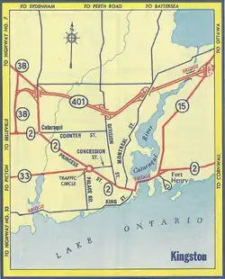 - ^ Ontario Road Map (Map). Cartography by C. P. Robins. Department of Highways. 1958. Kingston inset.
