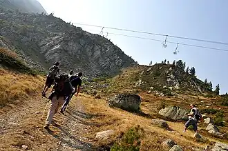 The preferred hiking zones are those providing at least a somewhat challenging set of trails, but also proximity to cities such as Prizren and Peja.[5] Even though Kosovo has many mountains that offer great trails for hiking, there are some that any hiker must visit because of their beauty and paths like: Sharr Gorge, mountains in Rugova Canyon and also Istog Gorge.[6] In many of these places it is possible to go by car but in some mountains like :"Gjeravica", Mariashi, Roshkodoli, Guri i Kuq, Milishefci and mountains in Belegu Gorge the only way to go is by off-road vehicle. "Sharr mountain" is known for its good region and good roads (passable by any vehicle) but that is not the case for Rugova and Deçan Gorge.