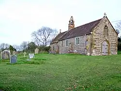 Hilfield parish church, dedicated to St Nicholas, has late 13th- or early 14th-century origins, though the present building dates from the 15th century and was substantially altered in 1848.[2] It has wooden parquet flooring, notable carved bench ends—possibly moved from Cerne Abbey[3] and thought to be Flemish but of unknown age—and the pulpit and seating have 16th-century panelling. It is one of the smallest English parish churches.[4]
