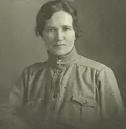 Hilja Riipinen's anti-communism was sparked by the Finnish Civil War. It turned into relentless hostility against socialism and she kept reminding of the "bloody Marxist revolution enthusiasm in 1918" in her speeches for years.[13] Her views have been described as one having to take part in a conflict between Marxist and non-Marxist world views, of which only one can win. She also felt that this was a flaw in the political system: democracy could only lead to bad compromises.[14] Being fond of "high spirituality", she opposed Marxist materialism and will to dispose traditional morality and modesty. Riipinen thought that socialism poisoned people's relationship to work by claiming that work is slavery.[15] Her radical views were widely noted in left-wing circles who considered her one of the worst agitators. Socialist newspapers wrote about "Amazon Hilja Riipinen" and referred to the "white fists of Hilja Riipinen".[16]