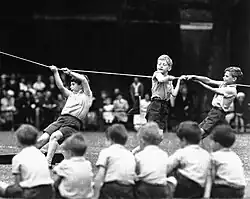 The then Prince Charles, center left, takes part in a sports day at Hill House School, in London, July 8, 1957[17]