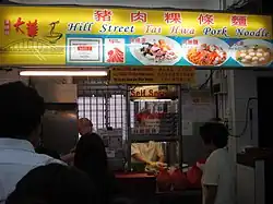 Hill Street Tai Hwa Pork Noodle is a street food stall, one of 6,000 such stalls within Singapore.[1] It was founded in the 1930s by Tang Joon Teo, but after he fell ill during the 1960s, his second son Chay Seng took over its management.[2] When Tang Joon Teo died in 1995, he left the stall to his three sons. Tang Chay Seng continues to run the stall, which was originally located at Hill Street, it moved in the 1990s to Marina Square and again in 2004 to Crawford Lane.[3]