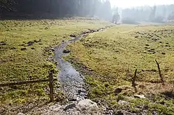 A section of the stream in the north has been straightened due to immediately adjacent agricultural use, but most of the stream has retained a natural course. The Einsel borders pasture land to the east. It flows through quarrying and grassland areas in the limestone hills southwest of Brilon.[1]