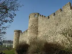 • Village fortifications, remnant of the former moated castle's girding wall from the High Middle Ages.