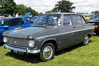 The Audax body was designed by the Rootes Group, but helped by the Raymond Loewy design organisation, who were involved in the design of Studebaker coupés in 1953. Announced in May 1956[20] the car went through a succession of annual facelifts each given a series number, replacing the mark number used on the previous Minxes. The Series I, introduced in 1956, was followed by the Series II in 1957, the Series III in 1958, the Series IIIA in 1959, the Series IIIB in 1960, the Series IIIC in 1961, the Series V in 1963 and the Series VI in 1965.[21] There was no Series IV. Over the years the engine was increased in capacity from 1390 cc (in the Series I and II) to 1725 cc in the Series VI. A variety of manual transmissions, with column or floor change, and automatic transmissions were offered. For the automatic version, the Series I and Series II used a Lockheed Manumatic two-pedal system (really only a semi-automatic), the Series III a Smiths Easidrive,[22] which was the first production dual-clutch transmission, while the V/VI a Borg Warner. The Series VI was fitted with an all-synchromesh gearbox.[23]