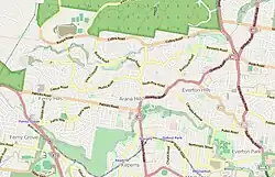 Suburban development in the Hills District commenced in the Arana Hills area in 1957, in the Everton Hills area in 1959 and in the Ferny Hills area in 1960.[1] These developments were the progressive extensions of the suburbs Keperra, Everton Park and Ferny Grove, which lie to the south of Kedron Brook Creek and are within the City of Brisbane.[1] However, with the spread of urban development into the southern part of the suburb Bunya in the 1980s, the term may also encompass this area.[4][5]