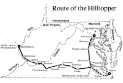 The Hilltopper was a passenger train operated by Amtrak in the Mid-Atlantic region of the United States. It ran daily from South Station in Boston, Massachusetts to Catlettsburg station in Catlettsburg, Kentucky. The 1,674 mi (2,694 km) run made 34 stops in 11 states and the District of Columbia.[1]