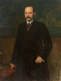 He then began to organize preparations for Argentina, arriving in Buenos Aires at the beginning of 1897, taking a position at the German embassy there. He replaced Friedrich von Mentzingen as chargé d'affaires the following year on 1 July 1898.[3] He left Argentina a year later and was assigned to Egypt, working at the German embassy in Cairo on 26 February 1900 under chargé d'affaires Maximilian von Loehr. He stayed in Cairo for two years becoming legation councilor in October 1902 before moving to the German embassy in London on 30 October 1902. He served in London as Second Secretary of the Embassy under Ambassador Paul Wolff von Metternich. His assignment was brief as he was assigned to the German embassy in Washington, D.C. on 2 July 1903 as First Secretary of the embassy under Ambassador Hermann Speck von Sternburg before becoming embassy counselor the following year.[4] Bussche-Haddenhausen's served in Washington until May 1906,[5][6] when he returned to the Foreign Office in Berlin in the Politics Department working, primarily, as a department head for English affairs. Shortly before his return to Argentina where he replaced Julius von Waldthausen, he became a Privy Legation Councilor on 17 May 1909.[3] At the beginning of 1910, he returned to Buenos Aires as Envoy also responsible for the tasks in Paraguay. He served in that role for four years, until his mission ended shortly before the outbreak of World War I.[7]