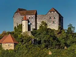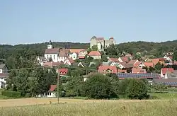 Hiltpoltstein Castle (German: Burg Hiltpoltstein) was originally a high mediaeval aristocratic castle dating to the 11th or 12th century. It stands in the centre of the market village of Markt Hiltpoltstein in the Upper Franconian county of Forchheim in the south German state of Bavaria. Its present appearance as a triple-winged building goes back to renovations carried out at the end of the 16th century.