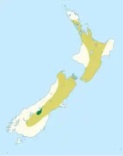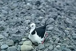 Although black stilts currently breed only in braided river systems in the South Island, subfossil bones show that prior to human arrival they were found in habitats as diverse as narrow bush streams in Hawkes Bay, and a wetland lake surrounded by forest in North Canterbury.[4] In the nineteenth century they bred on riverbeds and in wetlands of the central and eastern North Island and most of the South Island except Fiordland. As late as the 1940s they were still common in South Canterbury and Central Otago,[3] and nesting occurred in Central Otago as late as 1964.[2] Throughout their range they have been almost entirely replaced by pied stilts, which colonised New Zealand after human settlement and now number approximately 30,000.[4]