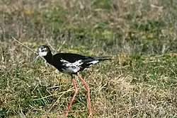 Black stilts are one of several species in the genus Himantopus, classified along with avocets in the family Recurvirostridae. Although genetically and behaviourally distinct from pied stilts (Himantopus himantopus), they are able to successfully hybridise with them. Hybridisation and dilution of the gene pool is one reason black stilts are threatened with extinction.[2] Black and pied stilts in New Zealand represent two colonisations of pied stilt ancestors from Australia: the first, long ago, giving rise to melanistic descendants, the second in the early 19th century.[2]