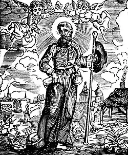| Attributes | Depicted as a pilgrim, with a staff; or ill in bed |