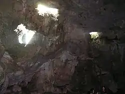 The cave is about 100 metres long, with many beautiful stalagmite and stalactite rock formations. There is a lagoon with a green hue produced by the green limestone at its bottom. People used to bathe there, but it is no longer advised due to karst pollutants in the water.