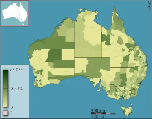 - ^ "2914.0.55.002 2006 Census Ethnic Media Package" (Excel download). Census Dictionary, 2006 (cat.no 2901.0). Australian Bureau of Statistics. 27 June 2007. Retrieved 14 July 2008.