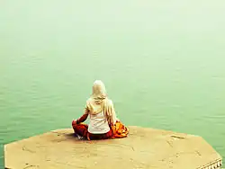 The term Dhyana appears in Aranyaka and Brahmana layers of the Vedas but with unclear meaning, while in the early Upanishads it appears in the sense of "contemplation, meditation" and an important part of self-knowledge journey.[7][11] It is described in numerous Upanishads of Hinduism,[12] and in Patanjali's Yogasutras - a key text of the Yoga school of Hindu philosophy.[13][14]