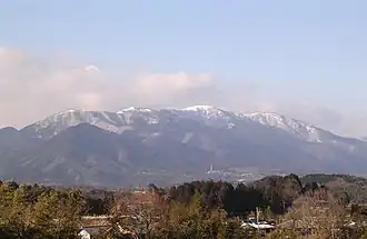 The Hira Mountains (比良山地, Hira-sanchi) are a mountain range to the west of Lake Biwa on the border of Shiga Prefecture and Kyoto Prefecture, Japan.[1] The range runs 15 kilometres (9.3 mi) north to south. It is narrowest in the southern part of the range, running 3 kilometres (1.9 mi) east to west, and broadest at the northern part of the range, running 10 kilometres (6.2 mi) km east to west.[2] The eastern side of the Hira Mountains looks steeply over Lake Biwa, while the western side of the range forms a gentler valley in Kyoto.[2]