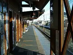 The station is staffed and consists of a single side platform serving a bidirectional track.[1] The log cabin-style station building has a small ticket office, but like all the other Chichibu Mainline stations, there is no ticket barrier. There is a waiting room and toilets, complete with disabled facilities.