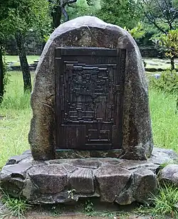 Within the castle walls, three trees survived the atomic bombing: a eucalyptus and a willow at approximately 740 m from the hypocenter,[4] and a holly approximately 935 m from the hypocenter.[5] Both specimens are preserved just beyond the Honmaru. Also located inside the Honmaru is the concrete bunker from which the first radio broadcast out of Hiroshima following the atomic bombing was made.