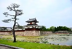 Hiroshima Castle (広島城, Hiroshima-jō), sometimes called Carp Castle (鯉城, Rijō), is a castle in Hiroshima, Japan that was the residence of the daimyō (feudal lord) of the Hiroshima Domain. The castle was originally constructed in the 1590s, but was largely destroyed by the atomic bombing on August 6, 1945. The main keep was rebuilt in 1958, a replica of the original that now serves as a museum of Hiroshima's history before the Second World War, and other castle buildings have been reconstructed since.