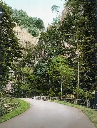 The name means "stag leap" and it is a narrow, gorge-like section of the ravine-shaped central portion of the Höllental ("hell valley") with rock faces up to 130 metres high. It is also called the Höllenpass ("hell pass"). It is located on the parish boundary between Breitnau and Buchenbach. The Hirschsprung gorge was only 9 metres wide before the upgrade of the road. The southern Hirschsprung rocks have been tunnelled under by the Jägerpfad ("Jäger’s path"), which ran alongside the Höllenbach (or Rotbach) stream, but has been closed since 2009 due to the danger of falling rocks and rockface collapse.[1]