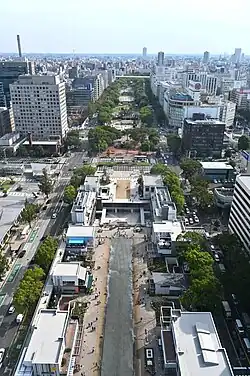 The park was laid out after the devastation of World War II by the mayor of Nagoya, in order to create green space in the middle of the city. It acts as a central park within the downtown area and has over the years been laid out with many trees, water fountains and works of modern art such as sculptures and other installations. The park is around 2 km long and stretches roughly from north to south.