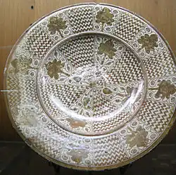 - ^ Caiger-Smith, 1985, has successive chapters called 6 "Moorish Lustre of Andalucia" and 7 "Hispano-Moresque Lustre", but most sources do not so distinguish, which given the difficulty of distinguishing the two reliably, and re-allocation of some types from one to the other, seems prudent.