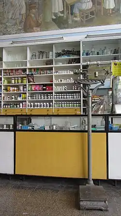 Designed by architect Javier “Maco” Gutiérrez,[6] the new premises were designed from the start to include a mural that could be seen from the street. For this reason, the pharmacy was built with double-height ceilings and large windows facing the street.[1]