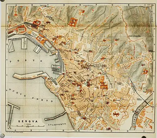 - ^ From the thirteenth edition of Italy, handbook for travellers, published in 1906, first edition by Karl Baedeker (1801–1859), cartography by Jahre H. Wagner and E. Debes