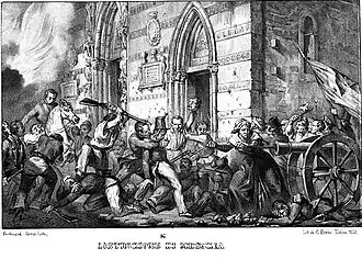 Like his father, he also attempted to reform Sicilian laws, but failed against baronial power: on September 19 and 20, 1773, there was a popular insurrection in Palermo, which broke out because of the death of the president of the city's Senate, Cesare Caetani, prince of Cassaro. The rioters stormed the Vicariate Palace and the Royal Palace. Between September and October, the revolt, led by the artisan guilds, inflamed the city and nearby Monreale, Piana dei Greci and Bisacquino.[42] The barons took advantage of this situation and stirred up the masses to show the government that, in the absence of their approval, it was impossible to govern Sicily. Although there was no intention to take the island away from the ruling house, the Palermo Revolution can be considered to all intents and purposes a political uprising, instigated and fomented by the local ruling class, having the goal of crushing the reformist policy.[43]