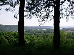Columbia, a mile west of the Little Miami River, was settled when a group of 26 people led by Benjamin Stites arrived on November 18, 1788. Stites had arranged parties of pioneers from New Jersey and Pennsylvania.[5] They settled at the present site of Lunken Airport,[3][6] where they built a blockhouse and log cabins, partially using wood from their flatboats.[5] More people arrived over time, and more cabins were built. They struggled to get enough food to feed themselves and the new arrivals, but they did what they could by fishing, hunting, making a flour out of bear grass, farming, and acquiring some food from traders from Pittsburg.[5] Of the three settlements, Columbia grew the fastest at first. It was initially the center of trading and the granary of the area.[5] The first Protestant church (Baptist) in the Northwest Territory was erected in Columbia.[7]