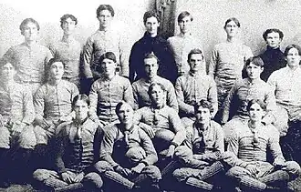 Walter Riggs can be characterized as the "Father of Clemson Football", as he brought the game with him from Agricultural and Mechanical College of Alabama (now Auburn University). The fact that Auburn and Clemson share the same mascot is no accident. Riggs allowed his players to pick the team mascot and, although he may have influenced their decision, the players chose Tigers because Princeton University had just won the national championship. Riggs helped organize and coach the infant Tiger team in 1896. With little money to spend on uniforms, Riggs brought some of Auburn's old practice uniforms with him, which happened to have orange and navy jerseys.[1] Because the jerseys had gone through a few washboard scrubbings, they were quite faded, the navy worse than the orange. So Riggs made the school's predominant color orange and the faded condition of the navy became the purplish color, officially known today as Regalia.[1] The team played as a member of the Southern Intercollegiate Athletic Association (SIAA), the first southern athletics conference.