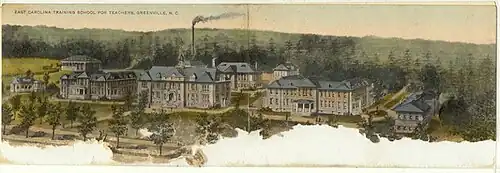 In December 1921, East Carolina Teachers Training School changed their name to "East Carolina Teachers College." This name change was to reflect how East Carolina had become a four-year degree-granting college, devoted to teacher education.[14]