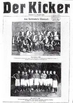 After the formation of the German Football Association, the first German championship final was held in 1903 and won by VfB Leipzig.[10] VfB Leipzig and others such as Britannia Berlin, Karlsruher FV, Karlsruher FC Phönix, BFC Viktoria 1889, Duisburger SpV and Holstein Kiel were the first major teams to emerge. The nascent German association permitted teams from outside the country in their new championship, as long as they were members of one of its regional associations. This is how Prague, a team from Austria-Hungary, managed an appearance in the German national final. Once the DFB joined FIFA (Fédération Internationale de Football Association) in 1904, clubs from outside the country were no longer permitted to play in Germany.