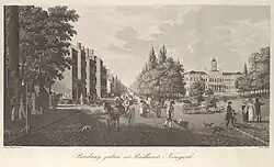 In 1831, as the city continued to expand, the University of the City of New York, now New York University, was founded at Washington Square in Greenwich Village. The first of a series of cholera epidemics began in 1832.[6] By 1835, with the epidemic past, Manhattan was in the throes of the first of its building booms.
