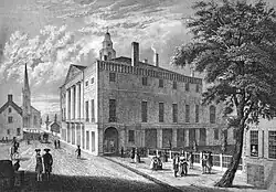 The history of New York City (1784–1854) started with the creation of the city as the capital of the United States under the Congress of the Confederation from January 11, 1785, to Autumn 1788, and then under the United States Constitution from its ratification in 1789 until moving to Philadelphia in 1790. The city grew as an economic center with the opening of the Erie Canal in 1825; the growth of its railroads added to its dominance. Tammany Hall began to grow in influence with the support of many Irish immigrants, culminating in the election of the first Tammany mayor, Fernando Wood, in 1854. The city had become the nation's most important port and financial center and competed with Boston as the center of high culture.[1]