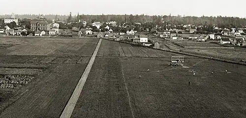 The emergence of a tangential new sport — indoor baseball — temporarily solved the perennial problem of rain-outs cased by Western Oregon's inevitably wet springs. Invented in Chicago in 1887[36] and played for the first time in the Pacific Northwest in the fall of 1891,[37] the game made its way to Corvallis during the 1898–99 academic year.[38]