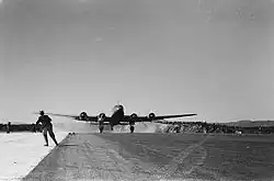 Operations to South America operated from Stockholm via Copenhagen onwards to Lyon, Lisbon, Dakar, Natal, Rio de Janeiro, Montevideo and Buenos Aires.[25] The first flight departed on 30 September, and for the first few months the service terminated in Montevideo. The route had a low cabin load, was constantly delayed because of the six intermediate stops, and failed to gain patronage owing to its flying only two round services each month.[26]