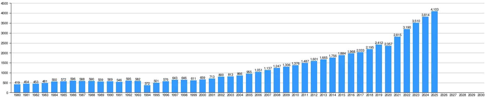 - ^ International Monetary Fund (2025). "Historical evolution of GDP per capita (Nominal) of Rwanda during the period 1980-2030". imf.org. Retrieved 2025-04-24.