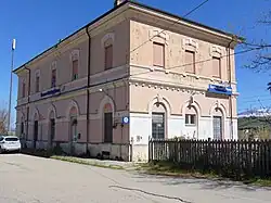 On March 1, 1873, the Pescara-Popoli section of the Rome-Sulmona-Pescara railway was inaugurated.[82] This railway line also passed over the territory of the municipality of Tocco, and as early as 1871 (since before the railway itself was inaugurated) the municipality had been lobbying for the construction of a station to serve the town.[83] It was built only decades later along with a bridge over the Pescara River to reach it and was inaugurated on October 17, 1894.[84]