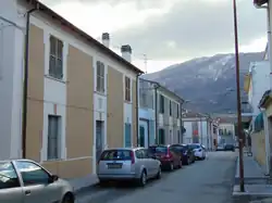 Although Tocco is of medieval foundation, there was already a settlement (pagus) called Interpromium in its territory in ancient times. Its location was not near the present town of Tocco (placed on an elevated area), but on the valley floor where the Via Tiburtina Valeria (today traced by State Road 5) passed near the plateau where the church of Our Lady of the Angels is today.[4][5] The ancient settlement was about 25.5 km away from Corfinium.[6] It has not yet been established with absolute certainty which Italic people inhabited it, whether the Marrucini[7] or the Peligni, although historians consider the Peligni to have been more likely.[1] Regarding its destruction, it is believed to have been caused by natural disasters such as earthquakes or floods,[1] although the area of the ancient settlement was continued to be inhabited until the early Middle Ages.[4]